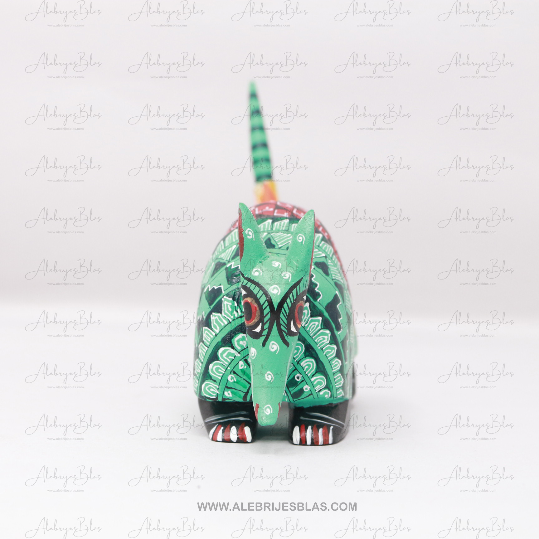 Artesanía zapoteca, Alebrije Armadillo tallado en madera de copal, pintado y decorado finamente por maestros artesanos del taller AlebrijesBlas.