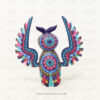 Las figuras de madera (actualmente nombradas tonas y nahuales), son artesanías mexicanas del estado de Oaxaca, seres imaginarios conformados por elementos fisionómicos de animales diferentes, una combinación de varios animales, no solo fantásticos sino también reales que forman un ser alucinante. En cada Alebrije plasmamos nuestro corazón, nuestra historia y la herencia cultural de nuestros ancestros zapotecas, con la única finalidad de brindar piezas únicas.Este Alebrije tiene colores muy pintorescos y llamativos al puro estilo oaxaqueño.