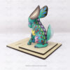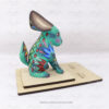 Las figuras de madera (actualmente nombradas tonas y nahuales), son artesanías mexicanas del estado de Oaxaca, seres imaginarios conformados por elementos fisionómicos de animales diferentes, una combinación de varios animales, no solo fantásticos sino también reales que forman un ser alucinante. En cada Alebrije plasmamos nuestro corazón, nuestra historia y la herencia cultural de nuestros ancestros zapotecas, con la única finalidad de brindar piezas únicas.Este Alebrije tiene colores muy pintorescos y llamativos al puro estilo oaxaqueño.