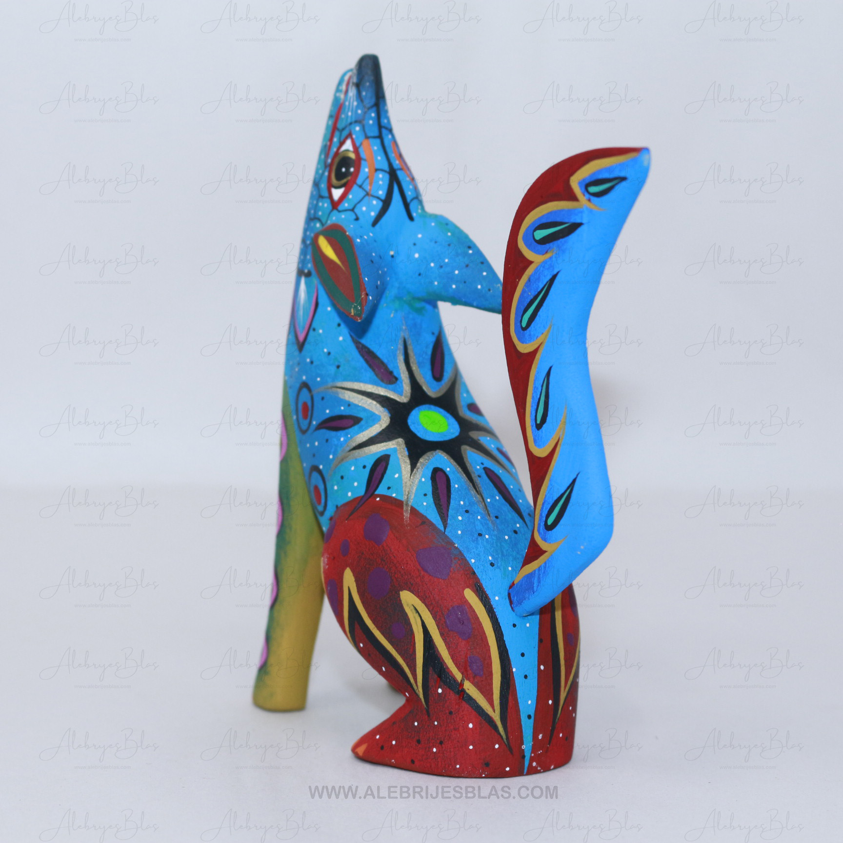 Las figuras de madera (actualmente nombradas tonas y nahuales), son artesanías mexicanas del estado de Oaxaca, seres imaginarios conformados por elementos fisionómicos de animales diferentes, una combinación de varios animales, no solo fantásticos sino también reales que forman un ser alucinante. En cada Alebrije plasmamos nuestro corazón, nuestra historia y la herencia cultural de nuestros ancestros zapotecas, con la única finalidad de brindar piezas únicas.Este Alebrije tiene colores muy pintorescos y llamativos al puro estilo oaxaqueño.