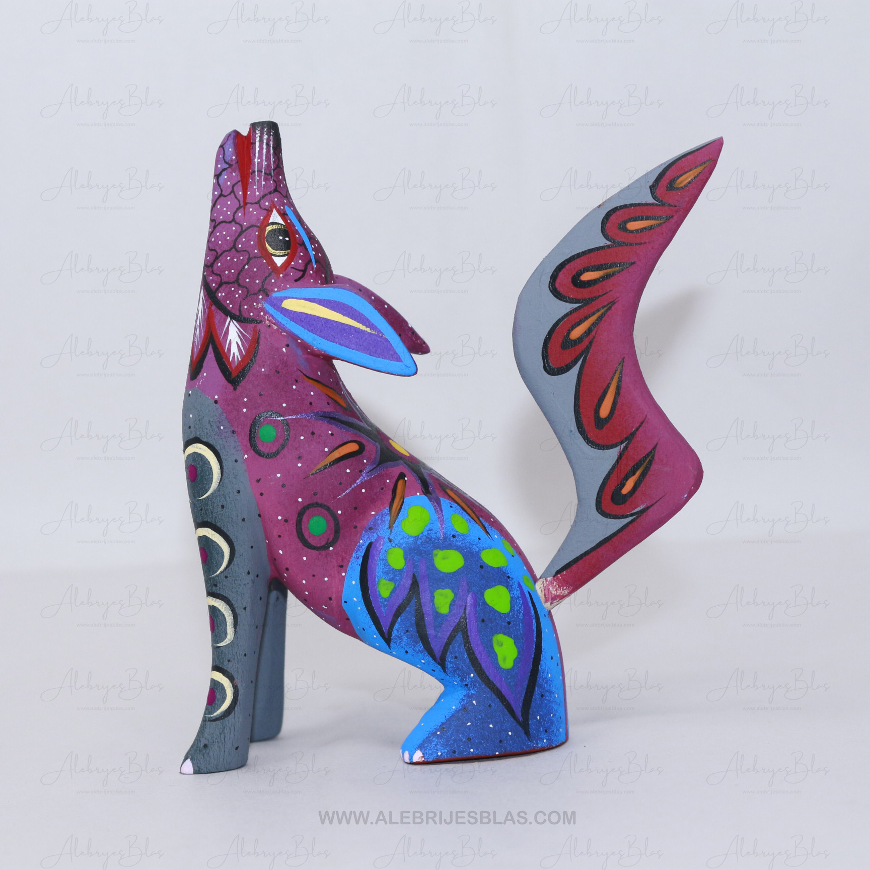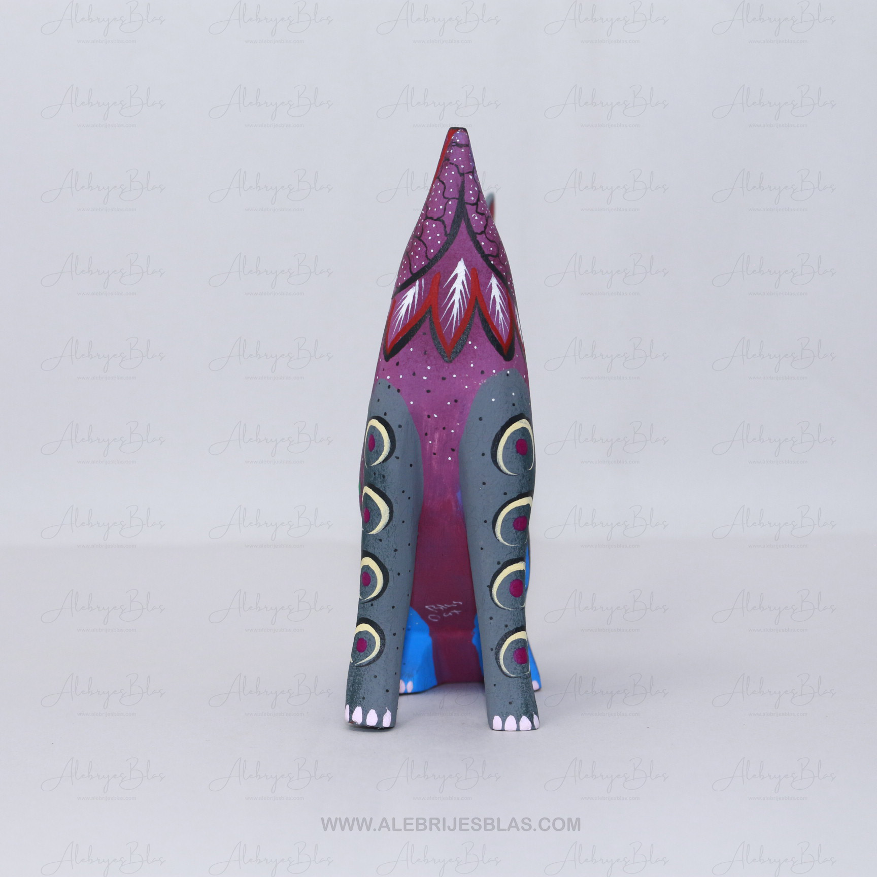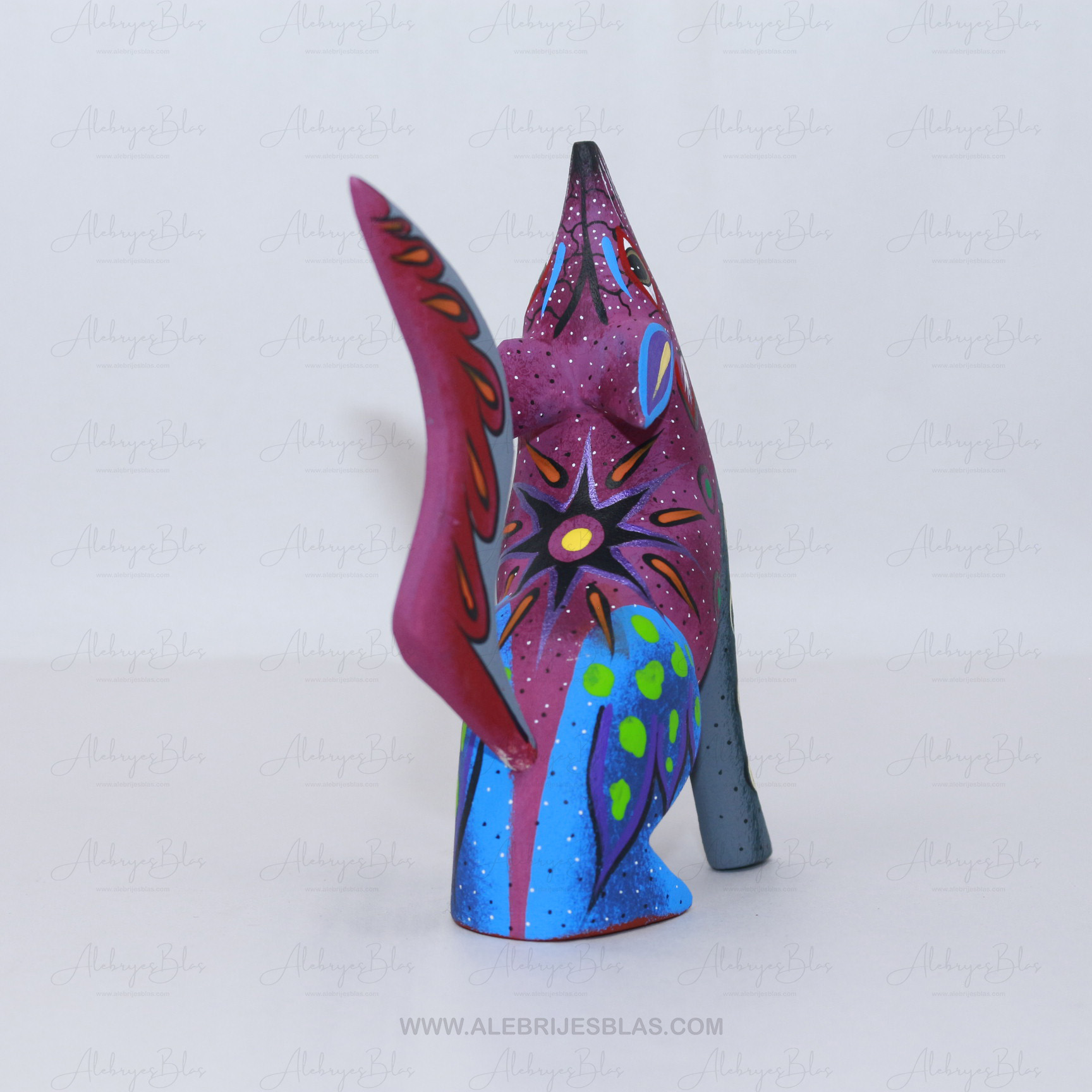 Las figuras de madera (actualmente nombradas tonas y nahuales), son artesanías mexicanas del estado de Oaxaca, seres imaginarios conformados por elementos fisionómicos de animales diferentes, una combinación de varios animales, no solo fantásticos sino también reales que forman un ser alucinante. En cada Alebrije plasmamos nuestro corazón, nuestra historia y la herencia cultural de nuestros ancestros zapotecas, con la única finalidad de brindar piezas únicas.Este Alebrije tiene colores muy pintorescos y llamativos al puro estilo oaxaqueño.