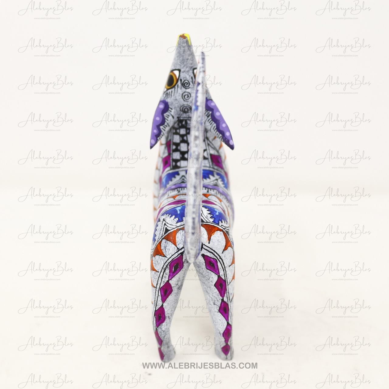 Las figuras de madera (actualmente nombradas tonas y nahuales), son artesanías mexicanas del estado de Oaxaca, seres imaginarios conformados por elementos fisionómicos de animales diferentes, una combinación de varios animales, no solo fantásticos sino también reales que forman un ser alucinante. En cada Alebrije plasmamos nuestro corazón, nuestra historia y la herencia cultural de nuestros ancestros zapotecas, con la única finalidad de brindar piezas únicas.Este Alebrije tiene colores muy pintorescos y llamativos al puro estilo oaxaqueño.