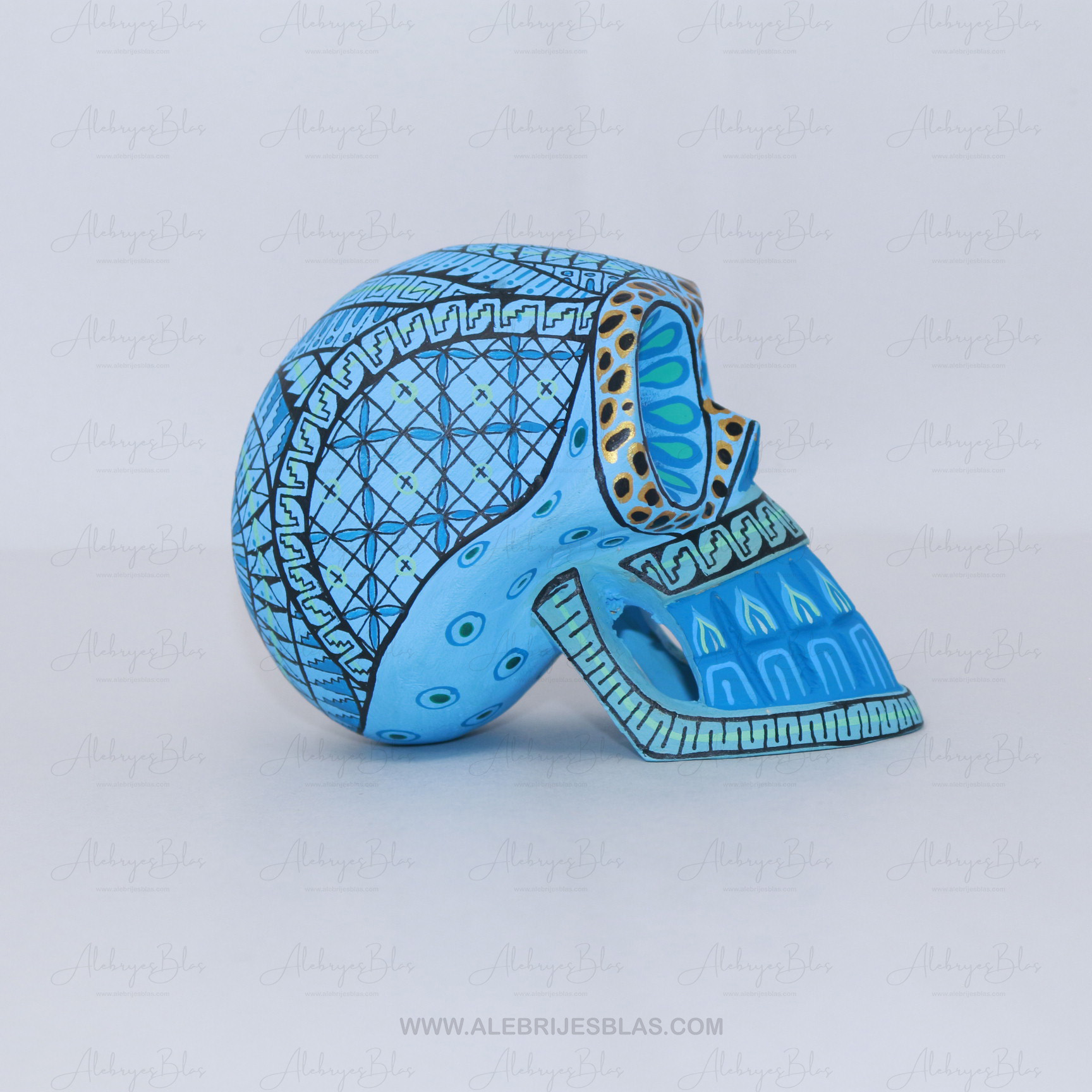 Desde los confines del tiempo y el susurro del viento, emerge este alebrije titulado “Eco de los Espíritus Antiguos”. Su cabeza de calavera grecada refleja la voz de quienes caminaron antes que nosotros, guardianes invisibles que habitan entre el mundo de los vivos y el de los sueños.