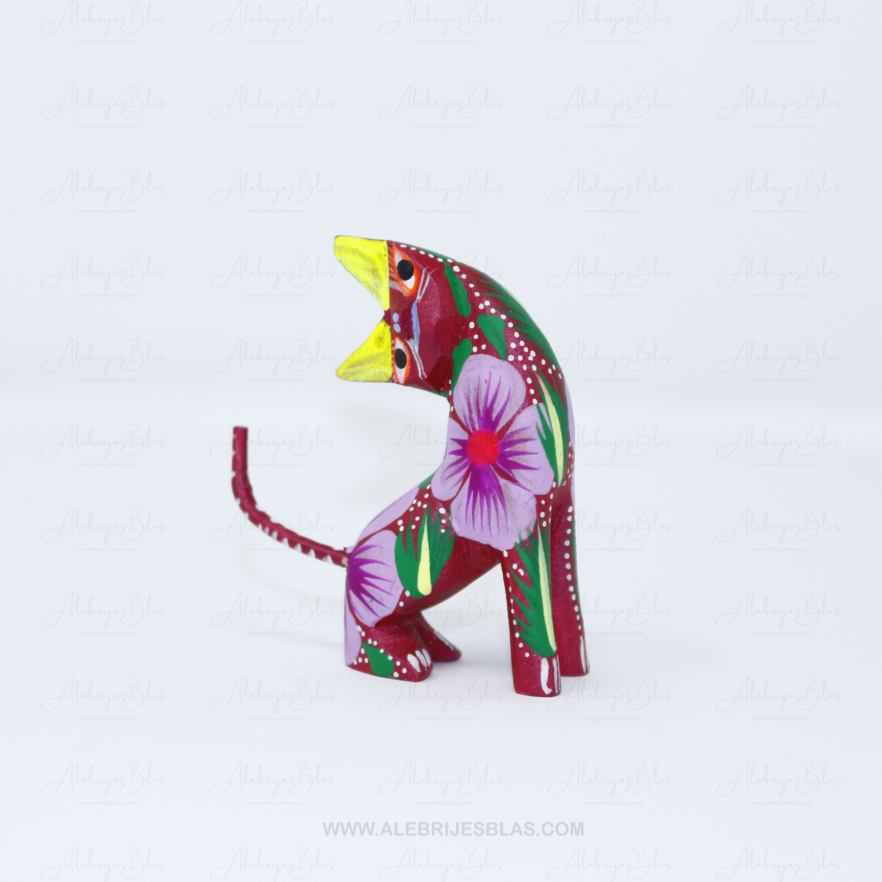 Las figuras de madera (actualmente nombradas tonas y nahuales), son artesanías mexicanas del estado de Oaxaca, seres imaginarios conformados por elementos fisionómicos de animales diferentes, una combinación de varios animales, no solo fantásticos sino también reales que forman un ser alucinante. En cada Alebrije plasmamos nuestro corazón, nuestra historia y la herencia cultural de nuestros ancestros zapotecas, con la única finalidad de brindar piezas únicas.Este Alebrije tiene colores muy pintorescos y llamativos al puro estilo oaxaqueño.