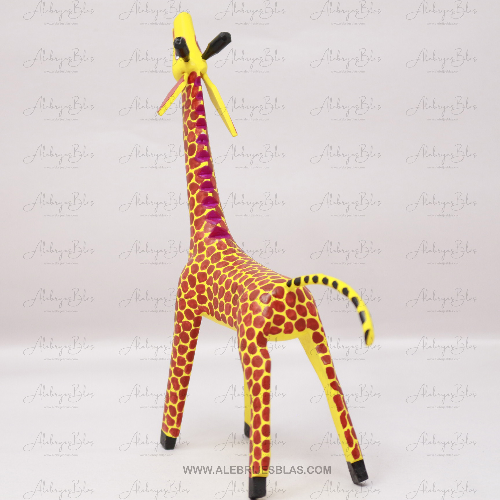 Las figuras de madera (actualmente nombradas tonas y nahuales), son artesanías mexicanas del estado de Oaxaca, seres imaginarios conformados por elementos fisionómicos de animales diferentes, una combinación de varios animales, no solo fantásticos sino también reales que forman un ser alucinante. En cada Alebrije plasmamos nuestro corazón, nuestra historia y la herencia cultural de nuestros ancestros zapotecas, con la única finalidad de brindar piezas únicas.Este Alebrije tiene colores muy pintorescos y llamativos al puro estilo oaxaqueño.