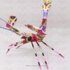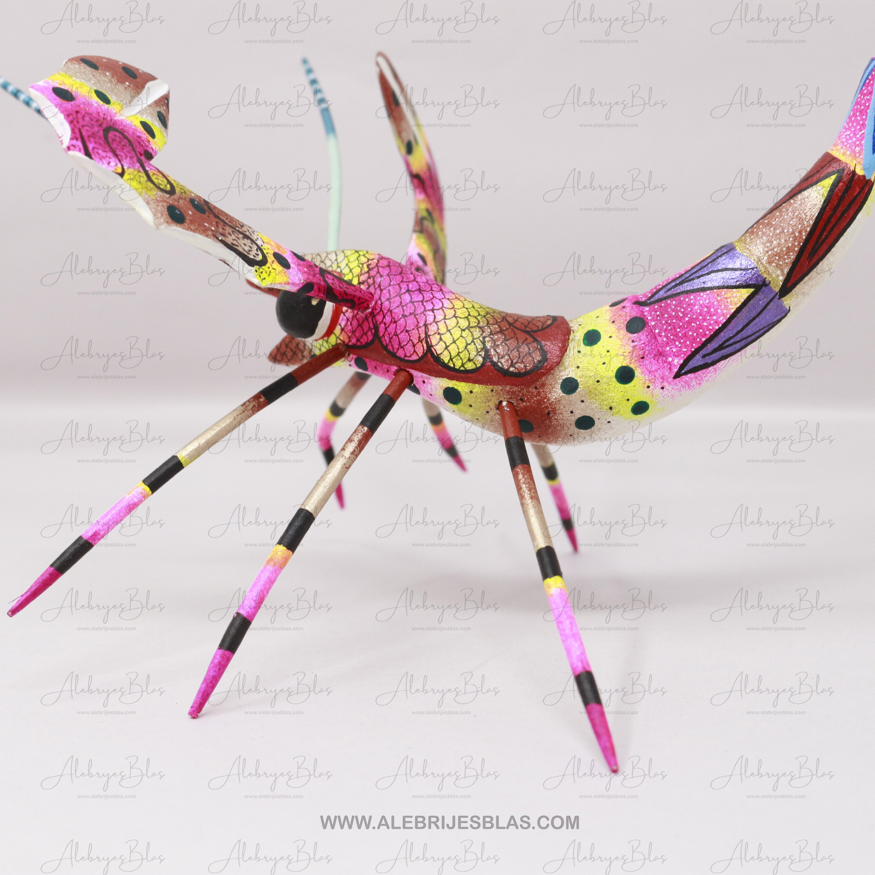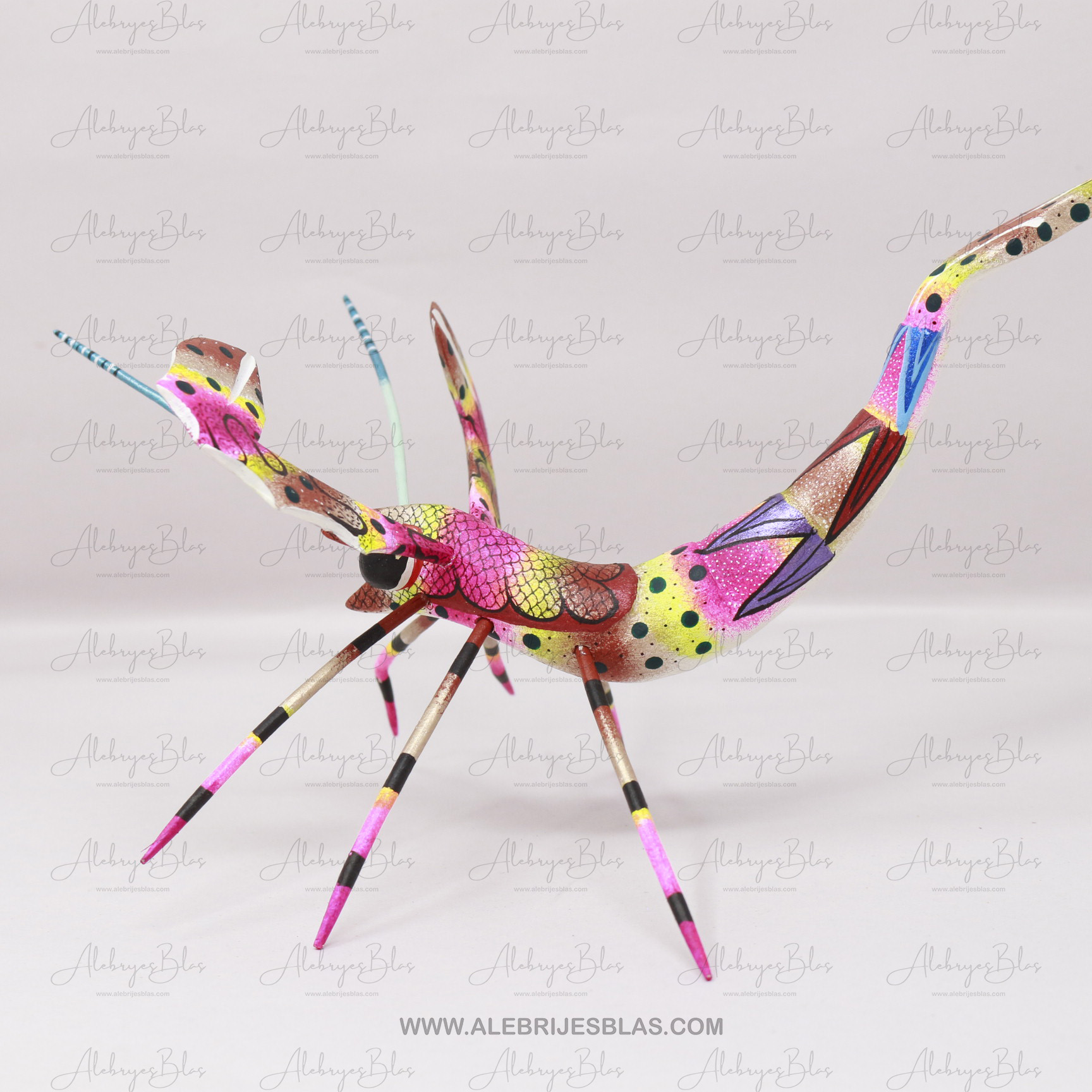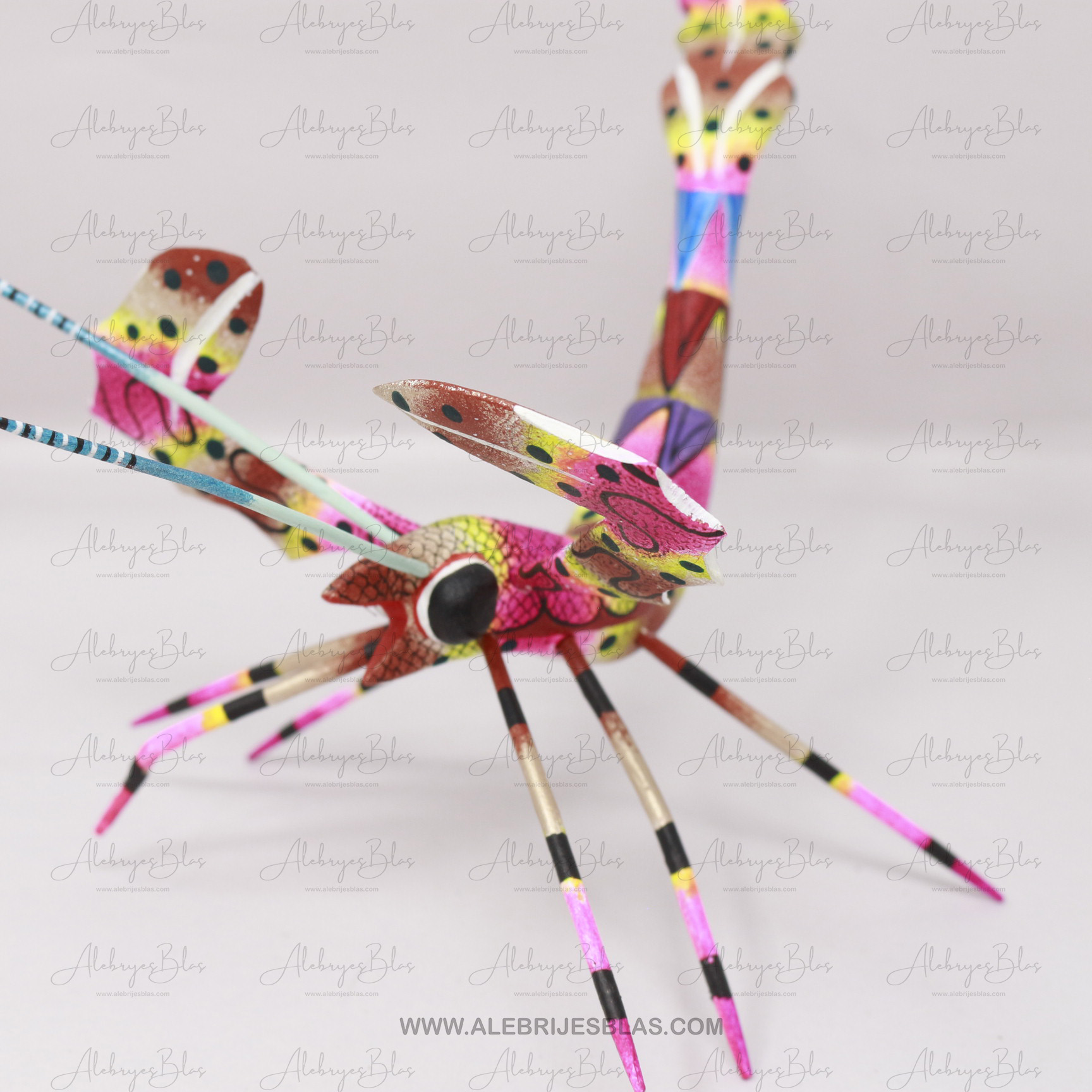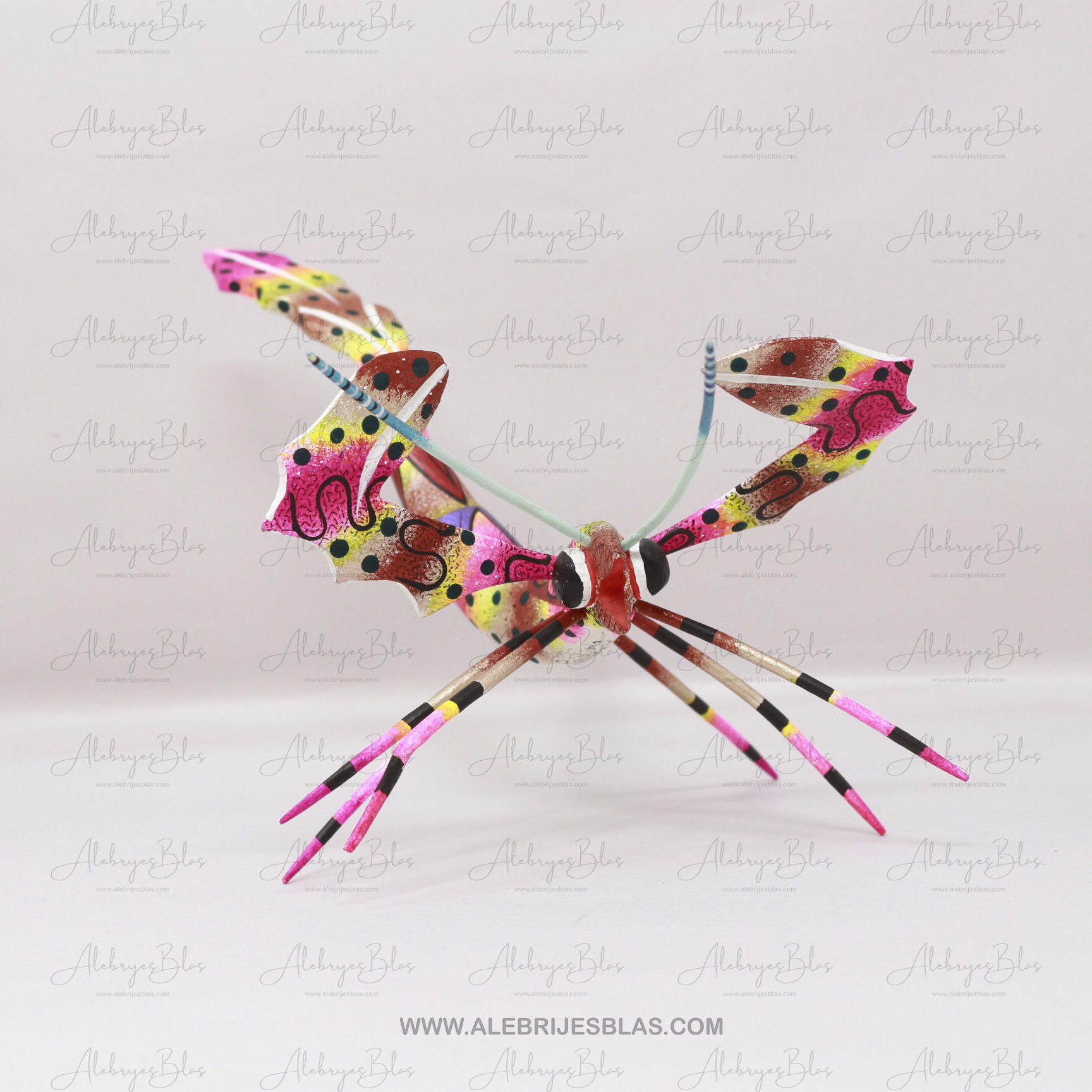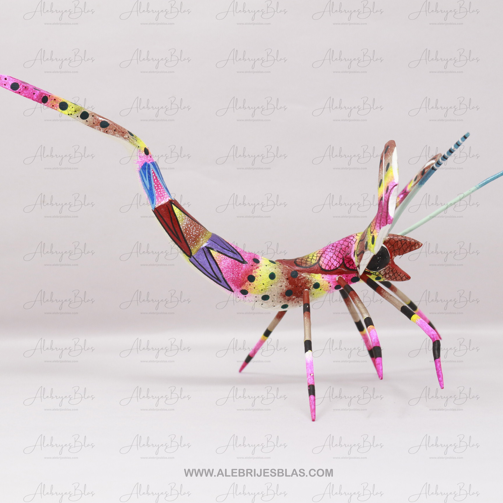 Las figuras de madera (actualmente nombradas tonas y nahuales), son artesanías mexicanas del estado de Oaxaca, seres imaginarios conformados por elementos fisionómicos de animales diferentes, una combinación de varios animales, no solo fantásticos sino también reales que forman un ser alucinante. En cada Alebrije plasmamos nuestro corazón, nuestra historia y la herencia cultural de nuestros ancestros zapotecas, con la única finalidad de brindar piezas únicas.Este Alebrije tiene colores muy pintorescos y llamativos al puro estilo oaxaqueño.