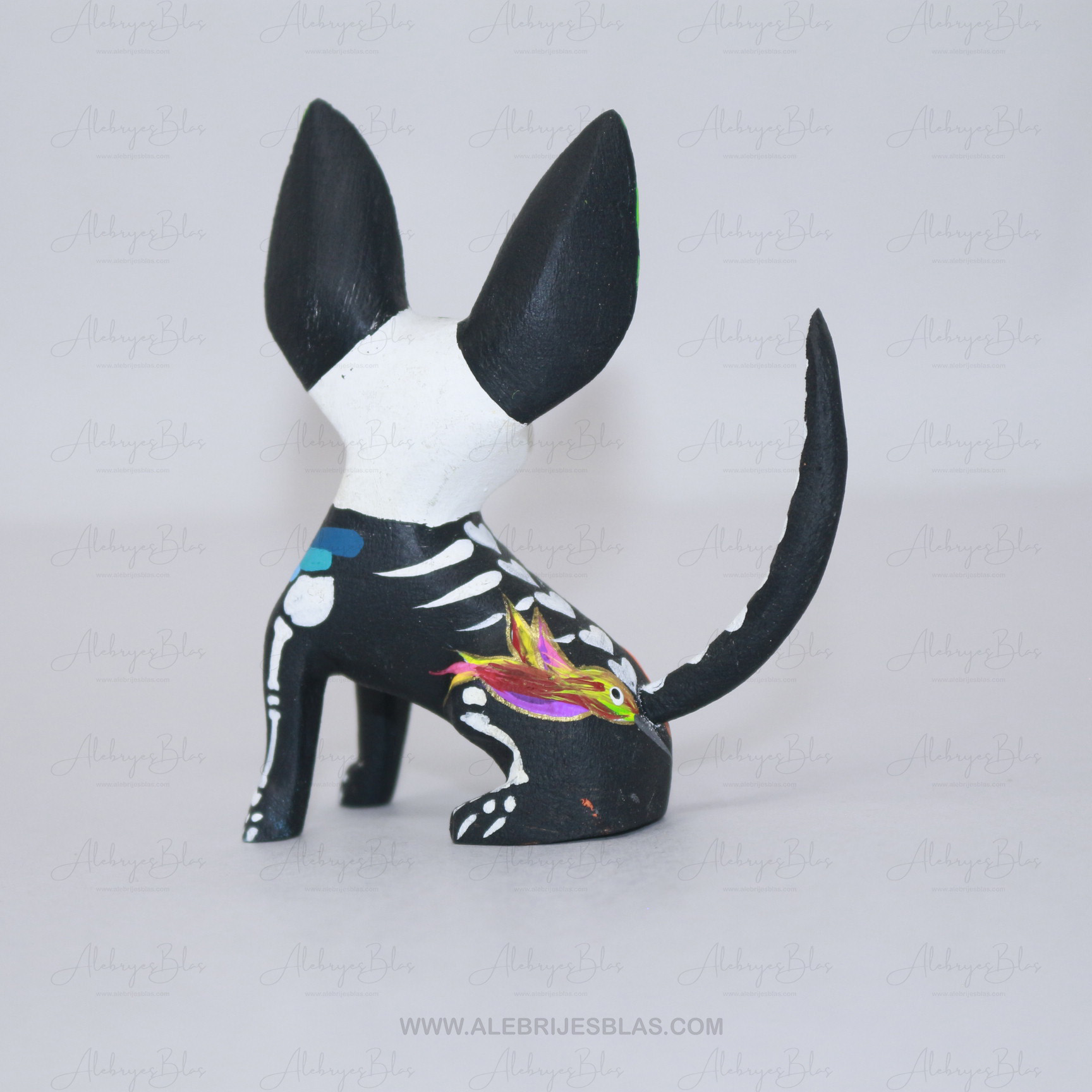 Las figuras de madera (actualmente nombradas tonas y nahuales), son artesanías mexicanas del estado de Oaxaca, seres imaginarios conformados por elementos fisionómicos de animales diferentes, una combinación de varios animales, no solo fantásticos sino también reales que forman un ser alucinante. En cada Alebrije plasmamos nuestro corazón, nuestra historia y la herencia cultural de nuestros ancestros zapotecas, con la única finalidad de brindar piezas únicas.Este Alebrije tiene colores muy pintorescos y llamativos al puro estilo oaxaqueño.