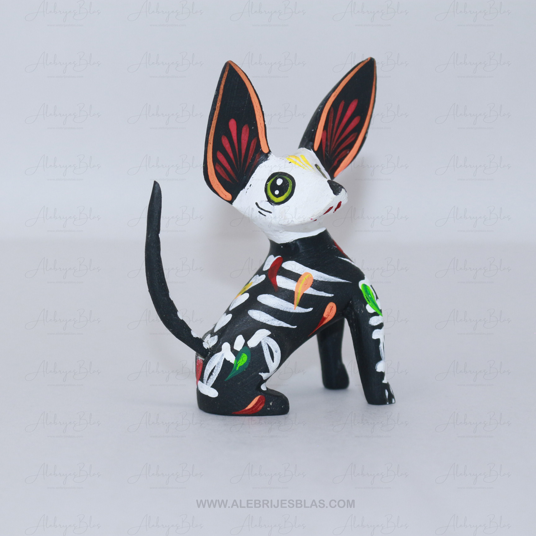 Este alebrije zapoteca, tallado en madera y lleno de colores vibrantes, ha sido creado por el maestro Paul Blas y pintado con dedicación por maestras artesanas del taller AlebrijesBlas, llevando consigo tradición, arte y simbolismo ancestral.