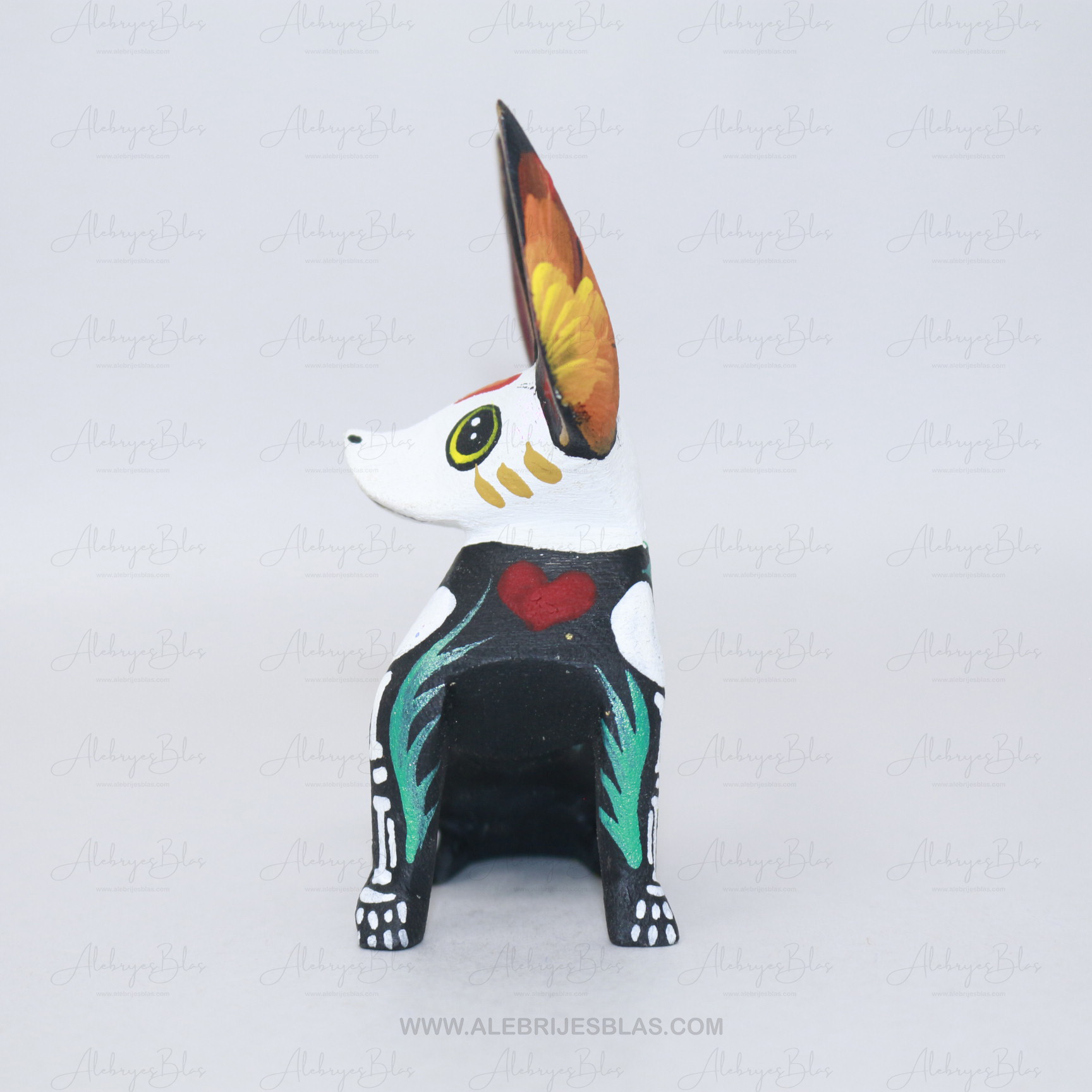 Las figuras de madera (actualmente nombradas tonas y nahuales), son artesanías mexicanas del estado de Oaxaca, seres imaginarios conformados por elementos fisionómicos de animales diferentes, una combinación de varios animales, no solo fantásticos sino también reales que forman un ser alucinante. En cada Alebrije plasmamos nuestro corazón, nuestra historia y la herencia cultural de nuestros ancestros zapotecas, con la única finalidad de brindar piezas únicas.Este Alebrije tiene colores muy pintorescos y llamativos al puro estilo oaxaqueño.