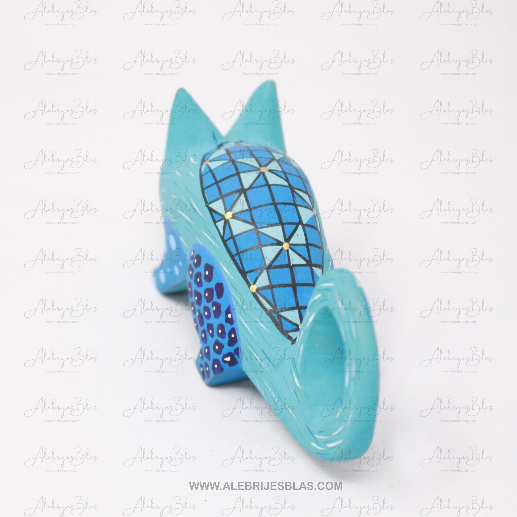 Las figuras de madera (actualmente nombradas tonas y nahuales), son artesanías mexicanas del estado de Oaxaca, seres imaginarios conformados por elementos fisionómicos de animales diferentes, una combinación de varios animales, no solo fantásticos sino también reales que forman un ser alucinante. En cada Alebrije plasmamos nuestro corazón, nuestra historia y la herencia cultural de nuestros ancestros zapotecas, con la única finalidad de brindar piezas únicas.Este Alebrije tiene colores muy pintorescos y llamativos al puro estilo oaxaqueño.