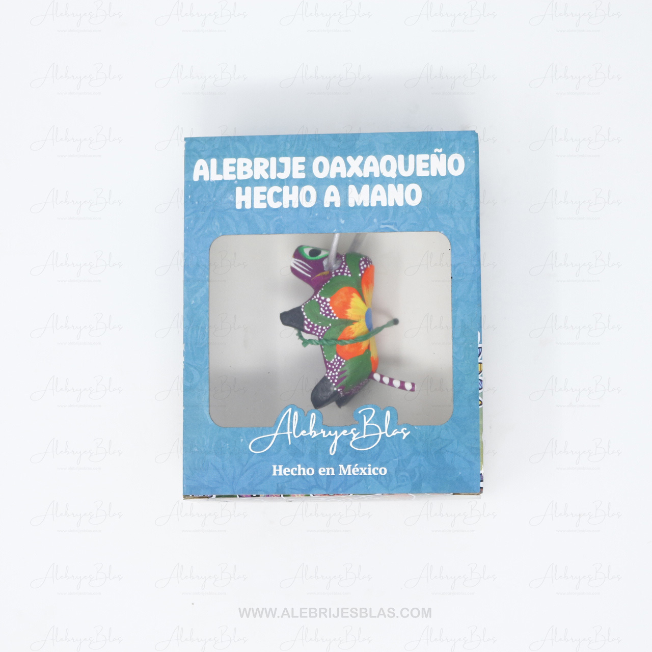 Dimensiones cm (Longitud x Ancho x Altura): Alebrije: 5 X 5 X 5cm aprox. Caja: 4 X 9 X 11.