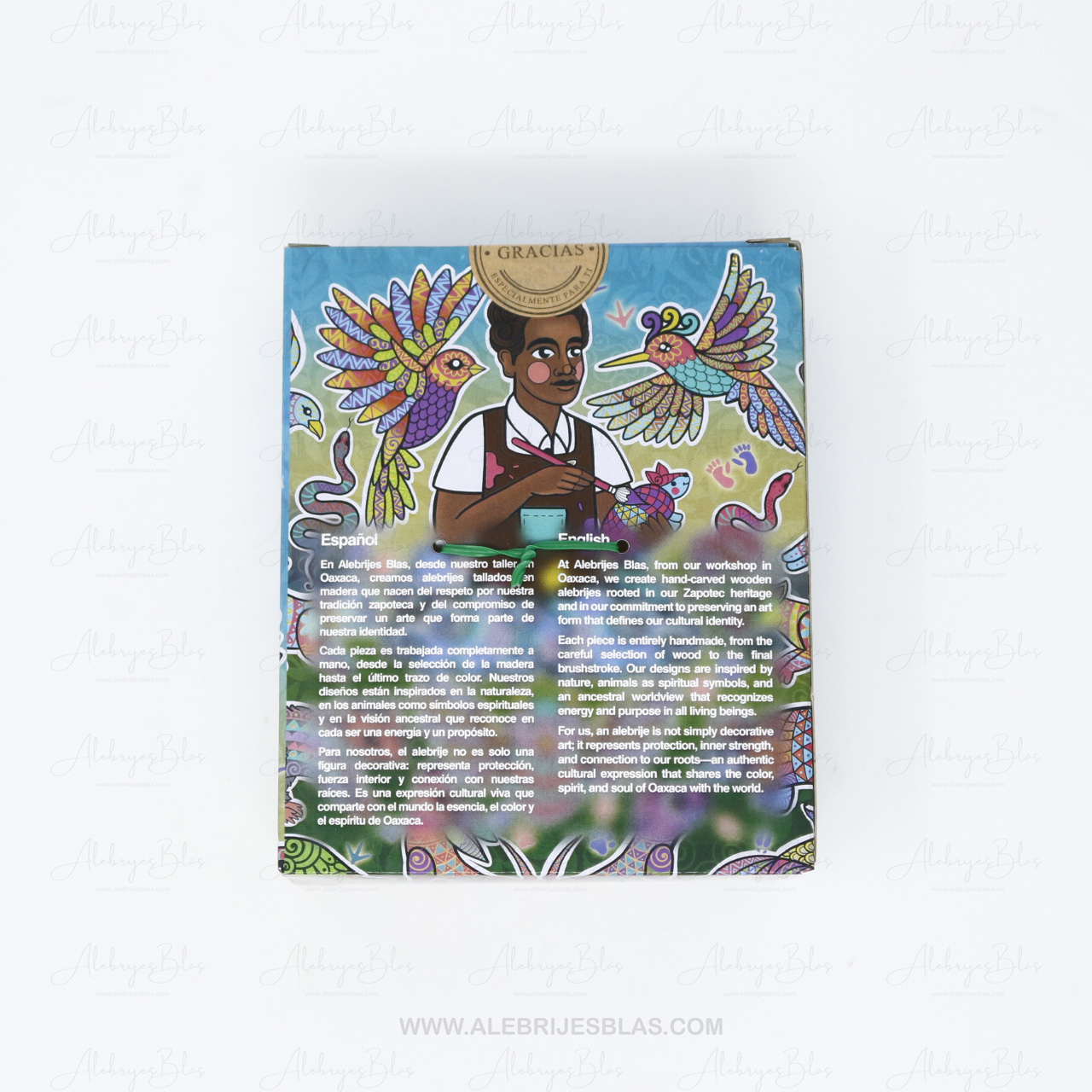 “Alebrijes Blas” deriva de una tradición familiar de más de 40 años en la creación de figuras talladas en madera y decoradas a mano. Somos 16 familias de artesanos de San Pedro Cajonos, Villa Alta, Oaxaca.