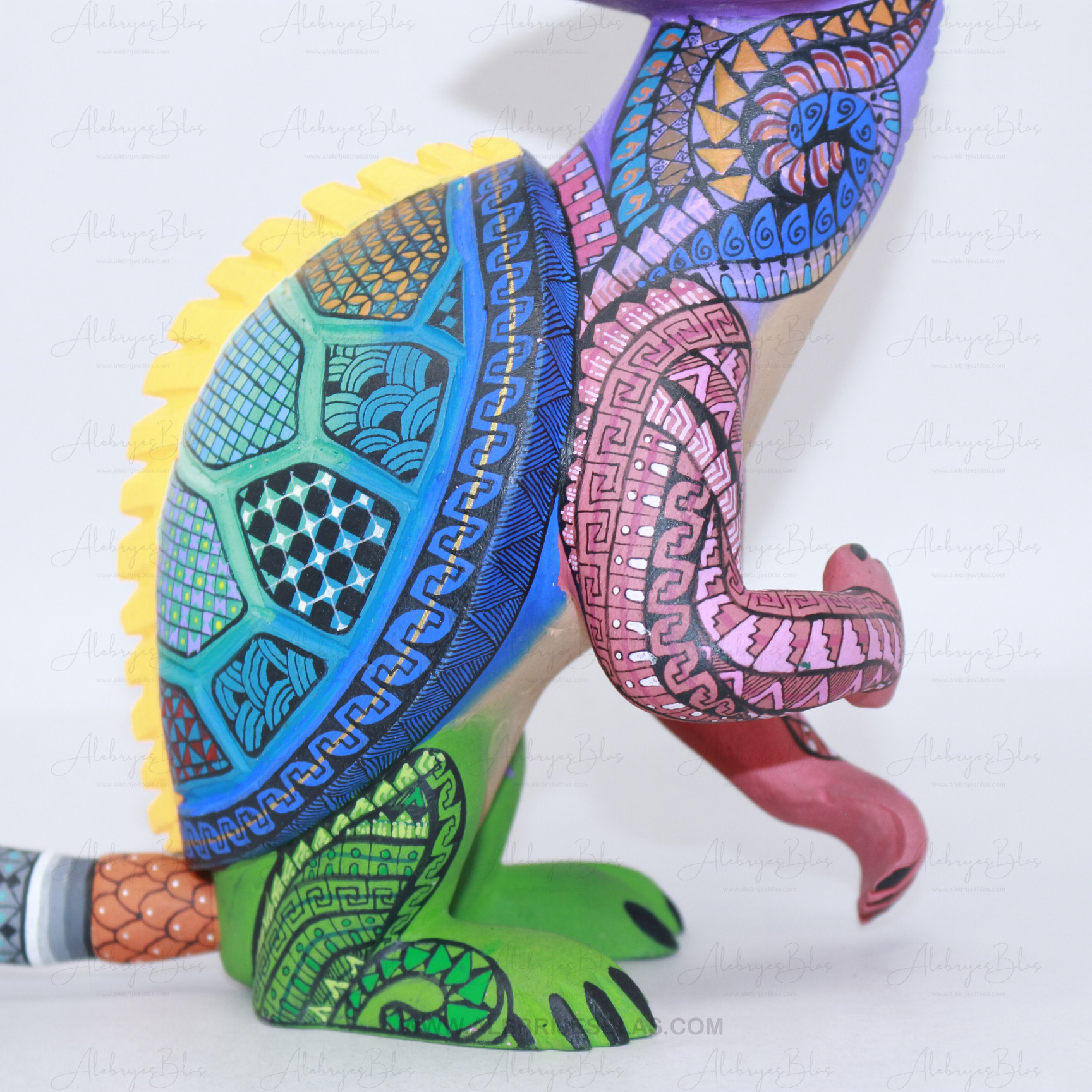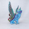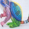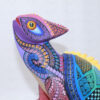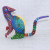 Las figuras de madera (actualmente nombradas tonas y nahuales), son artesanías mexicanas del estado de Oaxaca, seres imaginarios conformados por elementos fisionómicos de animales diferentes, una combinación de varios animales, no solo fantásticos sino también reales que forman un ser alucinante. En cada Alebrije plasmamos nuestro corazón, nuestra historia y la herencia cultural de nuestros ancestros zapotecas, con la única finalidad de brindar piezas únicas.Este Alebrije tiene colores muy pintorescos y llamativos al puro estilo oaxaqueño.