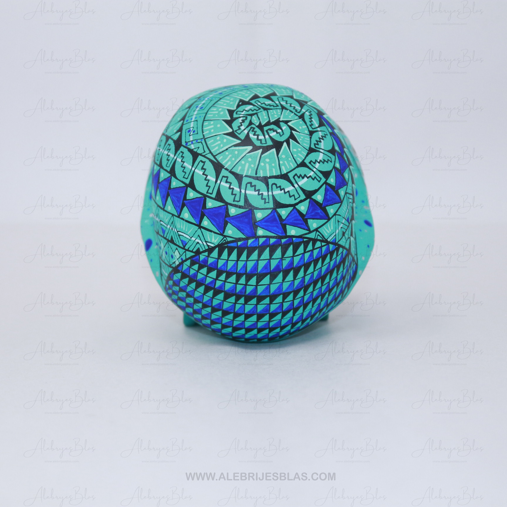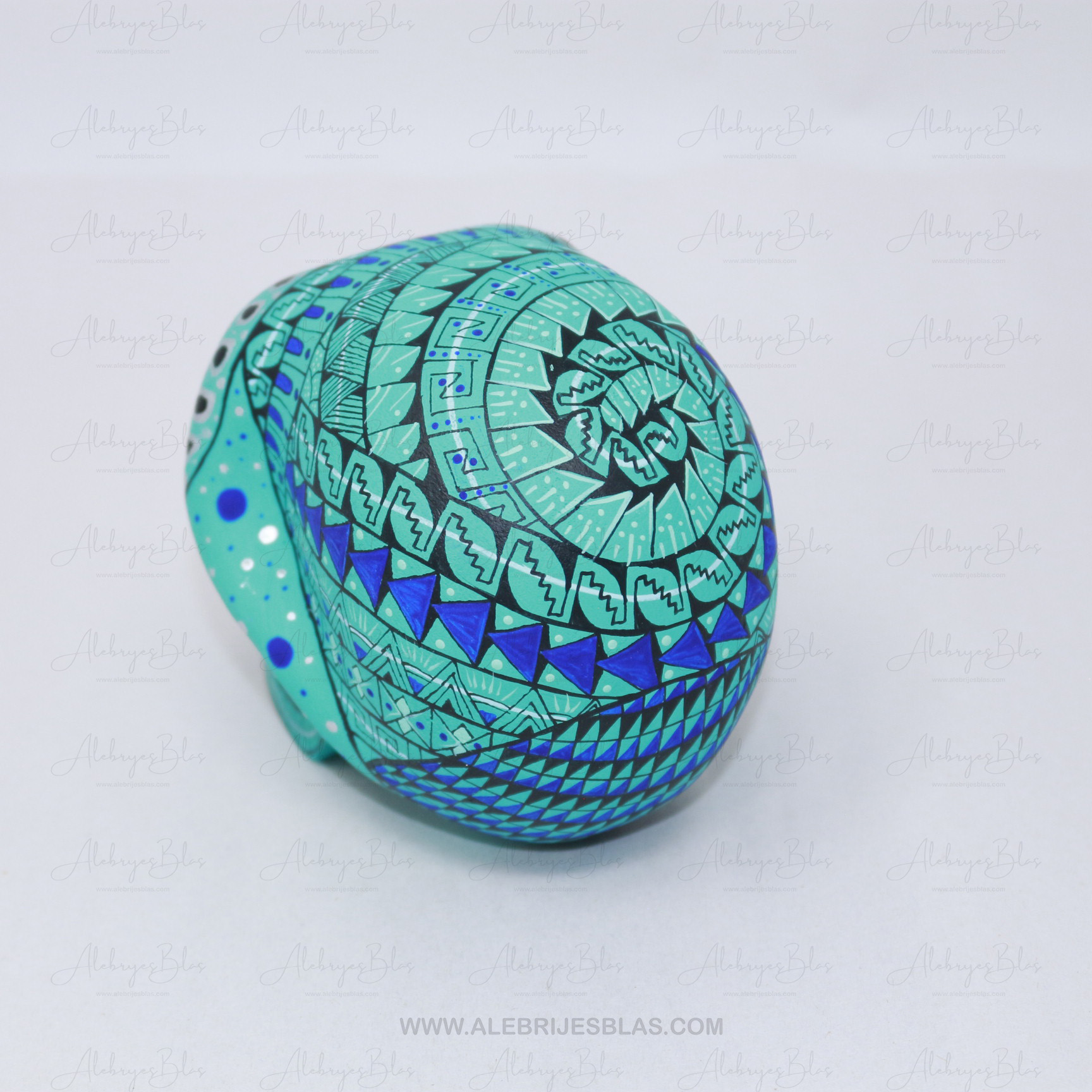 Las figuras de madera (actualmente nombradas tonas y nahuales), son artesanías mexicanas del estado de Oaxaca, seres imaginarios conformados por elementos fisionómicos de animales diferentes, una combinación de varios animales, no solo fantásticos sino también reales que forman un ser alucinante. En cada Alebrije plasmamos nuestro corazón, nuestra historia y la herencia cultural de nuestros ancestros zapotecas, con la única finalidad de brindar piezas únicas.Este Alebrije tiene colores muy pintorescos y llamativos al puro estilo oaxaqueño.