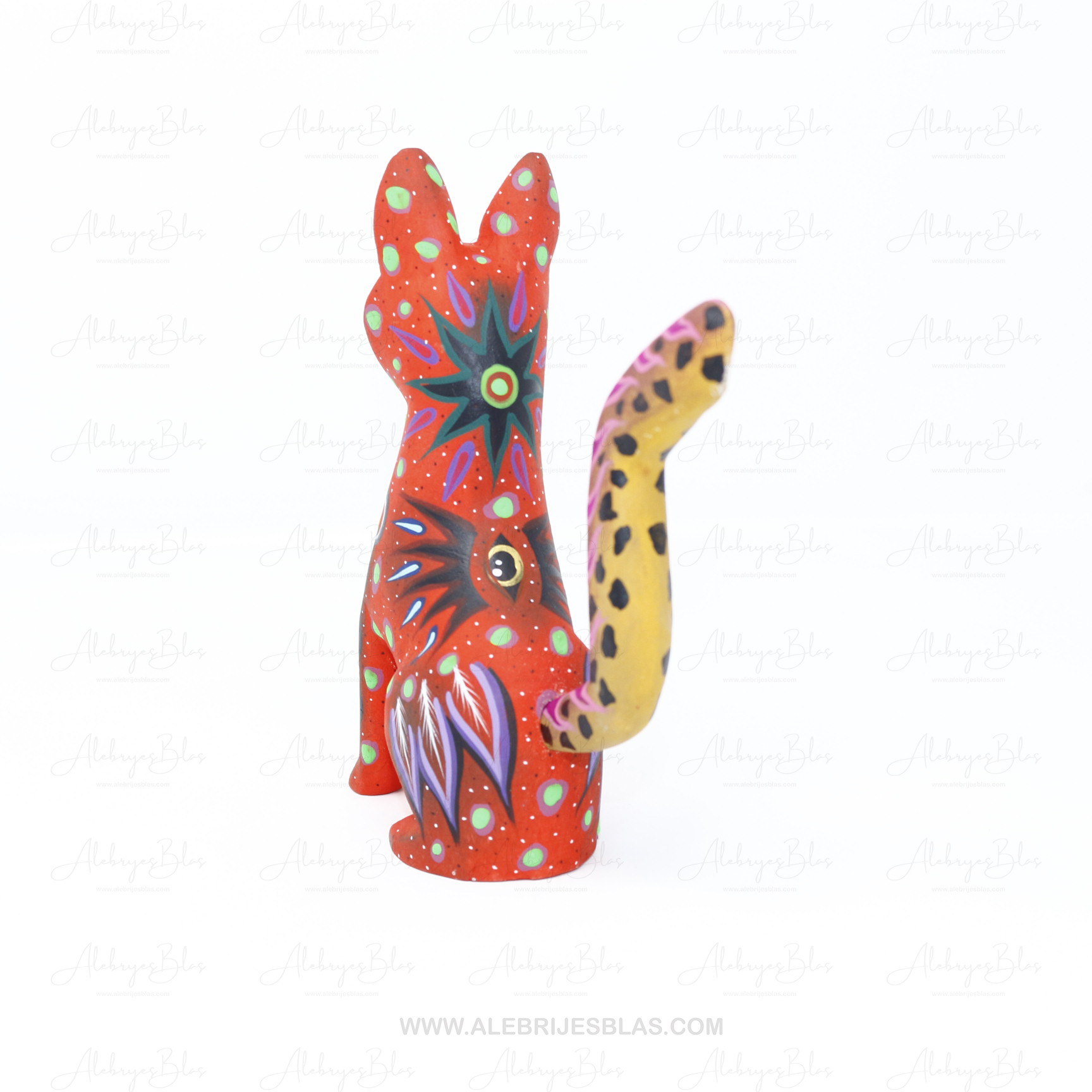 Las figuras de madera (actualmente nombradas tonas y nahuales), son artesanías mexicanas del estado de Oaxaca, seres imaginarios conformados por elementos fisionómicos de animales diferentes, una combinación de varios animales, no solo fantásticos sino también reales que forman un ser alucinante. En cada Alebrije plasmamos nuestro corazón, nuestra historia y la herencia cultural de nuestros ancestros zapotecas, con la única finalidad de brindar piezas únicas.Este Alebrije tiene colores muy pintorescos y llamativos al puro estilo oaxaqueño.