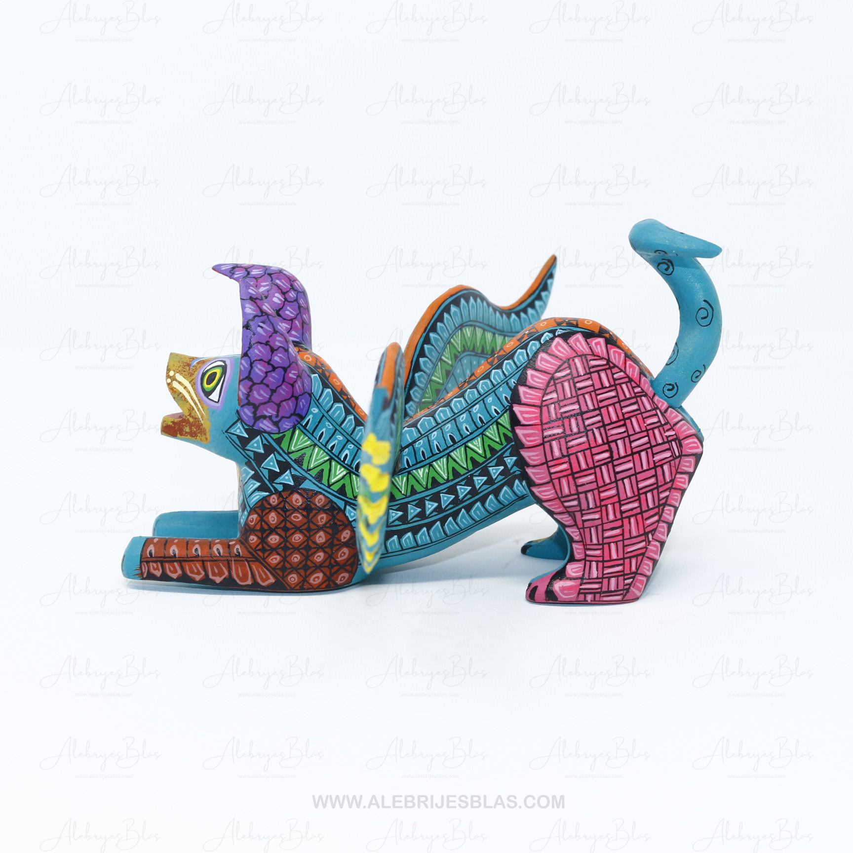 “Alebrijes Blas” deriva de una tradición familiar de más de 40 años en la creación de figuras talladas en madera y decoradas a mano. Somos 16 familias de artesanos de San Pedro Cajonos, Villa Alta, Oaxaca.